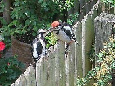![]() Eichhörnchensind bei uns zu Haus, in rot und schwarz, Haselnüsse gibt es reichlich. Das Futterhäuschen im Haselnußbaum wurde nur einmal inspiziert, die Nüsse schmecken aber sichtlich besser als das Vogelfutter und so sehen wir sie selten am Boden, häufig in den Wipfeln akrobatisch turnen.SpechtTäglich dreimal zu fast festen Zeiten kommen die Spechte, im Sommer brachten sie die Jungvögel mit zur Futterstelle. Jetzt im Winter kommt treu ein Paar. Sie bevorzugen die Meisenknödel, hacken und picken, manchmal schnappen sie sich eine Nuß und verschwinden in einer Astgabel des Ahorns.![]() ![]() |